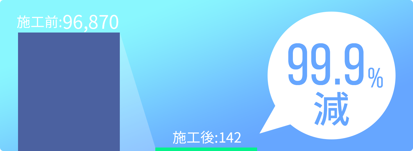 | 検査場所 | 施工前ATP値 | 施工後ATP値 | ATP値減少率 |